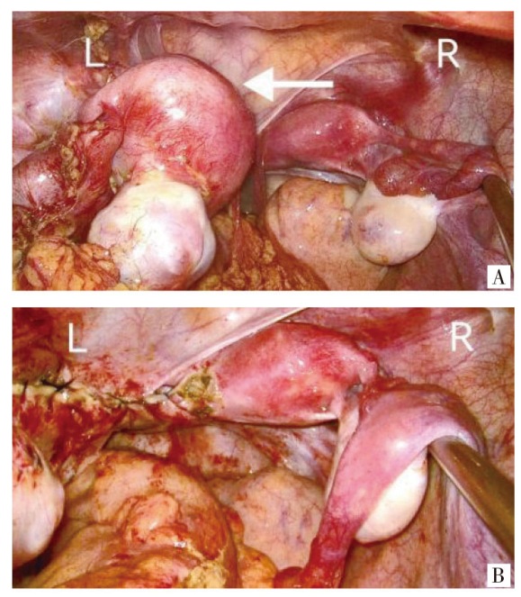 单角子宫作为米勒管发育异常的重要类型之一,是指仅有一侧米勒管正常发育而形成的子宫畸形。流行病学数据显示,该畸形占子宫畸形的 0.3%~4.0%,其中约35%的病例会合并残角子宫及同侧肾缺如。报告1例左侧非交通型有腔残角子宫合并同侧肾缺如青少年患者,临床表现为痛经并进行性加重,经盆腔磁共振成像检查确诊,排除手术相关禁忌证后行经脐单孔腹腔镜下残角子宫切除术+左侧输卵管切除术+盆腔子宫内膜异位病灶切除术+盆腔粘连松解术+脐整形术,术后病理证实残角子宫内膜呈分泌期改变,患者痛经症状缓解。提示早期诊断和规范化的手术治疗对改善患者生活质量具有重要意义。